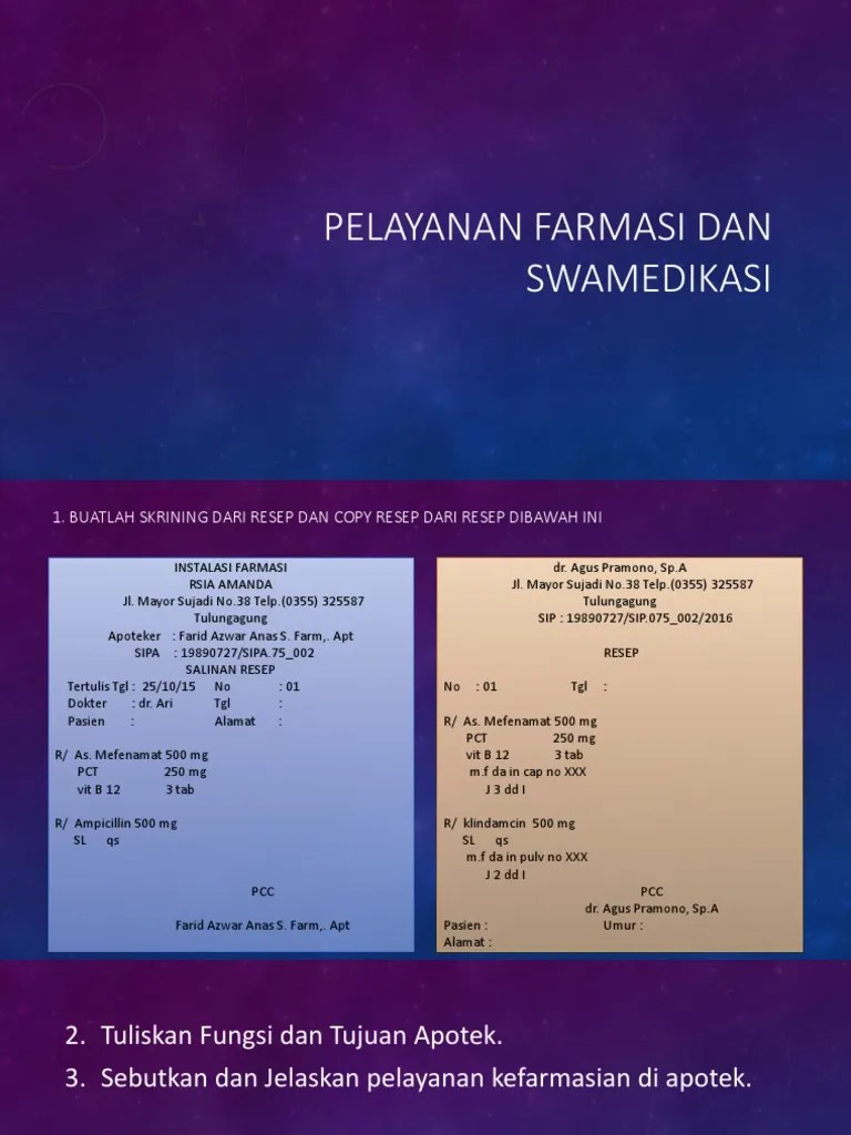 Soal uts farmasi sosial mata kuliah : .pengelolaan perbekalan farmasi, pelayanan farmasi klinik, dan pelayanan farmasi khusus. Pelayanan farmasi klinik di apotek merupakan bagian dari pelayanan kefarmasian yang langsung dan bertanggung jawab kepada pasien berkaitan dengan sediaan. Peranan dalam manajemen farmasi rumah sakit apoteker sebagai pimpinan farmasi rumah. Latar belakang profesi farmasi adalah kegiatan kerja dalam rangka pelaksanaan pekerjaan kefarmasian sebagai salah… / november 2014 waktu : Baiklah langsung saja berikut contoh soal pelayanan farmasi kelas 11 semester 2 kurikulum 2013 beserta jawabannya. Hindari makanan yang merangsang tenggorokan dan udara malam. Pelayanan farmasi kompetensi keahlian : Dibawah ini merupakan contoh soal uji kompetensi (ukom) farmasi / ukai edisi ke 82 beserta 4. Memberikan pelayanan kefarmasian dan bertanggung jawab terhadap pasien terkait dengan perbekalan farmasi termasuk obat dan bahan medis habis pakai yang bermutu dan. Pelayanan kefarmasian adalah bentuk pelayanan dan tangggung jawab langsung profesi apoteker dalam pekerjaan kefarmasian untuk meningkatkan kualitas hidup. Contoh soal pelayanan farmasi kelas 11 semester 2 kurikulum.